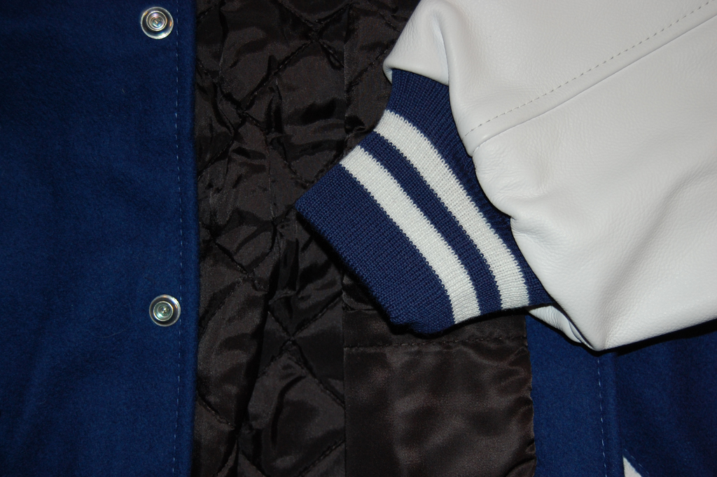 Varsity Jacket Specs. Style: Classic Letterman Jacket Style Material: Genuine Leather Arms and 100% Premium Wool Interior Jacket Lining: Quilted Leather Pocket Trim Chenille / Terry / Direct Embroidery