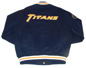 TITANS Style: Classic Letterman Jacket Style Material: Genuine Leather Arms and 100% Premium Wool Interior Jacket Lining: Quilted Leather Pocket Trim Chenille/Terry/Tackle Twill/Appliqu and direct embroidery facities are available