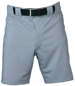 Base Ball Shorts 14 oz. Pro Weight Warp Knit Polyester Wide elastic waist Knitted-in stripes Two snap closure / zipper fly Two front pockets Rear patch pocket Pro-style tunnel belt loops